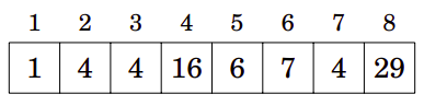 Veja uma representação visual de uma SegTree para o array a = [1,3,−2,8,−7]: